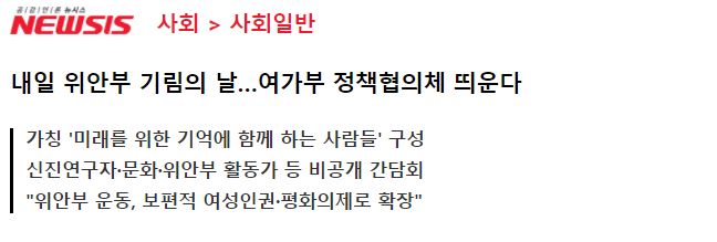 내일 위안부 기림의 날…여가부 정책협의체 띄운다 :: 공감언론 뉴시스통신사 :: (newsis.com)