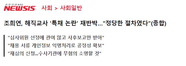 조희연, 해직교사 '특채 논란' 재반박…"정당한 절차였다"(종합) :: 공감언론 뉴시스통신사 :: (newsis.com)