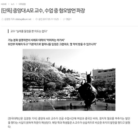 publications 썸네일형 리스트형 새 과기혁신본부장 인선에 과학계 촉각 한국대학신문 2017.08.21 1105호 http://news.unn.net/news/articleView.html?idxno=178221 더보기 70여개 대학 도서관, 새해 첫 날부터 일부 논문 못 봐 2018.01.01 한국대학신문 온라인 http://news.unn.net/news/articleView.html?idxno=183521 더보기 靑 과기보좌관 “창조과학, 중기부 장관 후보자 검증요소 아냐” 2017.08.25 한국대학신문 온라인 http://news.unn.net/news/articleView.html?idxno=178474 더보기 중앙대 A모 교수, 수업 중 혐오발언 파장 2017.05.11 한국대학신문 온라인 http://news.unn.net/news/articleView.html?idxno=173619 [단독] 중앙대 A모 교수, 수업 중 혐오발언 파장 - 한국대학신문 기능 분화 설명하면서 사례로 대학의 “커피파는 아가씨”위안부 피해자 두고 “기본적으로 할머니들 입장은 그랬어요. 몇 억씩 받을 수 있으니까” [한국대학신문 김정현 ... news.unn.net 더보기 기초연구비 18% 증가…대학가 연구현장 숨통 트나 한국대학신문 2017.07.17 1100호 http://news.unn.net/news/articleView.html?idxno=176755 더보기 이전 1 2 다음